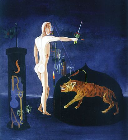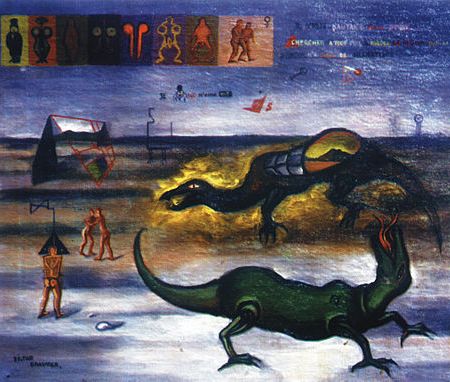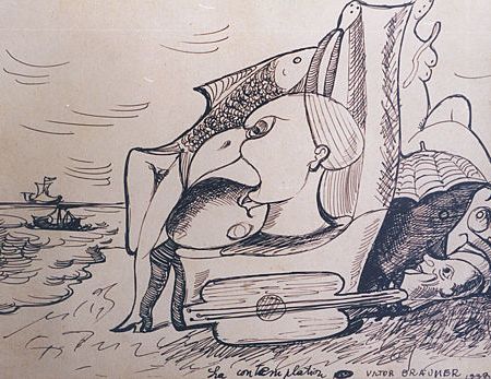 (1903-1966) Victor Brauner s-a nascut pe 15 iunie 1903 la Piatra Neamt. La indemnul tatalui urmeaza intre 1916-1918 cursurile Scolii Evanghelice din Braila. In 1921 frecventeaza pentru scurt timp cursurile Scolii de Arte Frumoase din Bucuresti, perioada in care prefera sa picteze peisaje, fiind puternic influentat de Cezanne. Organizeaza prima sa expozitie personala in 1924 la la Galeria Mozart din Bucuresti, prezentand lucrari realizate intr-un stil expresionist. A fost unul dintre fondatorii publicatiei dadaiste 75 HP din Bucuresti. Pleaca la Paris in 1925, dar aproape un an mai tarziu revine in Bucuresti. Colaborarea si prietenia cu cercurile dadaiste si suprarealiste il fac pe Brauner sa participe si la aparitia revistei UNU, in 1929. Din 1930 Brauner se stabileste la Paris, unde se imprieteneste cu Constantin Brancusi. Acolo il intalneste pe Yves Tanguy, care pana in 1933 ii face cunostinta cu reprezentantii parizieni ai curentului Suprarealist. Cu ocazia primei expozitii personale pariziene, care a avut loc in 1934 la Galerie Pierre, Andre Breton semneaza o prefata entuziasta a catalogului de prezentare. Cu toate acestea expozitia nu este bine primita de critica, iar Brauner se intoarce la Bucuresti, unde ramane pana in 1938. Se intoarce la Paris, unde locuieste impreuna cu Tanguy. In aceasta perioada realizeaza o serie de tablouri ce infatiseaza figuri umane distorsionate si mutilate. Era o bizara premonitie a pictorului, care si-a pierdut in 1938 un ochi intr-o incaierare inceputa mai mult in joaca. La inceputul celui de al doilea razboi mondial, Brauner s-a refugiat in sudul Frantei, unde tinea legatura cu suprarealistii ramasi la Marsilia. Ulterior s-a refugiat in Elvetia. Din cauza crizei economice provocate de razboi nu a putut gasi materialele pentru pictura, asa ca a fost nevoit sa improvizeze, folosind materiale precum ceara de lumanare si inventand o noua tehnica graffito. Brauner s-a intors la Paris in 1945. A participat in 1947 la Expozitia internationala a suprarealismului, organizata la Galerie Maeght din Paris. Creatia sa postbelica incorporeaza forme si simboluri bazate pe cartile de Tarot, hieroglifele egiptene, arta veche din Mexic. In anii 50 Brauner calatoreste in Italia, participand in 1954 si 1966 la Bienala vieneza. Moare la Paris pe 12 martie 1966. Foto : Autoportret (1823) ; Compozitie cu animale fantastice ; Compozitie cu nud (1962) ; Iubitului Sasa Pana (1930) ; La contemplation (1937) ; Le surrealiste (1947) ; Peisaj cu copaci ; Personaj cu balaur ; Personaj fantezist (1939) ; Stephane Roll (1928) . |