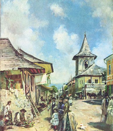 Theodor Aman (1831-1891) a avut un rol deosebit in reorganizarea invatamântului artistic românesc fiind fondator, alaturi de Gh. Tatarescu, al Scolii de Arte Frumoase din Bucuresti si al celei din Iasi (1864). Ultimul reprezentant al academismului in pictura româneasca, receptiv insa la inovatiile moderne, impresioniste, manifesta predilectie pentru subiectele din istorie si legendele nationale ("Izgonirea turcilor la Calugareni", "Boierii surprinsi la ospat de trimisii lui Vlad Tepes"), scene de gen ("Hora la Aninoasa", "Bal mascat in atelier", "Pe terasa la Sinaia"), portrete ("Principesa Zoe Brâncoveanu"), naturi moarte, peisaje ("Portul Constanta", "Corabii la Constanta"). Lucrari in acvaforte. Membru post-mortem al Academiei Române. A contribuit la ridicarea statutului artistului in societatea romaneasca, la fondarea Scolii de Arte Frumoase (1863), al carei prim director a fost. Celebritatea si succesul de public ii sunt umbrite odata cu afirmarea lui Nicolae Grigorescu, a carui prima expozitie avea loc in 1873. Imagini : "Vlad Tepes si solii turci" ; "Tiganca" ; "Hora la Aninoasa" ; "Strada din Cimpulung" |