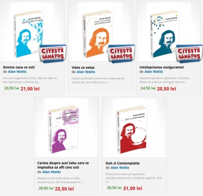 Si ne bucuram ca putem sa iti aducem aproape, in limba romana, cele mai apreciate carti ale sale. Le-am inclus intr-o colectie dedicata, intitulata simplu: „Alan Watts”.