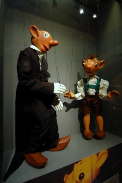 Istorie a teatrului de papusi din oras, expozitia incepe prezentarea acestei traditii de la papusarii calatori pana la primele teatre improvizate, piesele populare si primele ateliere de marionete, fara sa uite marile nume din domeniu, care au marcat traditia acestei arte in localitate si in imprejurimi. O adevarata explozie a popularitatii acestui gen de teatru a inceput in secolul XIX, cu piese populare, marionete modeste, adesea improvizate de vreun mestesugar inspirat, si in scurta vreme succesul a fost atat de mare incat de la artistii itineranti s-a ajuns la teatre adesea elegante, cu un colectiv stabil si un repertoriu bogat. Iar perioada interbelica avea sa fie marcata nu doar de numeroase spectacole, dar si de aparitia a doua marionete celebre in Cehia, Spejbl si Hurvinek - in imaginea din stanga - cuplu comic legendar in aceasta tara, ce si-au facut debutul pe scena in acea perioada. Iar de numele celor doi eroi ai genului se leaga personalitati din domeniu precum Josef Skupa, Jiri Trnka sau Gustav Nosek, si astazi nume legendare pentru cei pasionati de o forma de arta ce a pornit ca o creatie de amatori si a devenit pentru Pilsen un adevarat fenomen. Si in afara de Spejbl, Hurvinek si prietenii lor vizitatorii vor putea gasi aici, fireste, si o sala unde pot manui ei insisi marionete mari si mici, facand primii pasi in deprinderea acestui mestesug. Foto: muzeumloutek.cz, pilseun.eu
