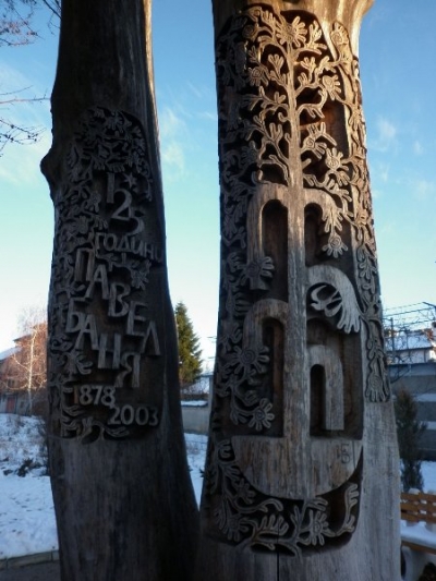 Simbolul orasului este cu siguranta vechiul ulm pe care il puteti vedea aici, transformat in ultimii ani intr-o opera de arta vegetala dupa ce trunchiul a fost transformat intr-o sculptura in lemn. Unul dintre cei mai vechi arbori din regiune, oficial un obiectiv natural protejat, ulmul secular s-a uscat din pacate la sfarsitul anilor '90 dupa ce multi ulmi din Bulgaria au fost afectati de aceeasi boala. Pastrat si astazi si devenind un simbol al localitatii poate fi considerat un original monument, iar sculpturile cu motive vegetale, geometrice, traditionale l-au transformat radical. In parcul orasului veti descoperi un monument in stil clasic, ridicat in amintirea soldatilor originari din oras care au cazut pe frontul de lupta, o compozitie in piatra infatisand bustul unei femei triste, pe soclu fiind trecute numele celor cazuti. In partea din fata veti vedea si o mica fantana, apa iesind prin gura unui leu de piatra ce aminteste de stilul si vremurile de altadata. Nu este si singurul monument de gen pe care il puteti vedea in orasul Pavel Banea. Il puteti vizita si pe cel dedicat tenorului Todor Russev Mazarov, nascut in 1905 in localitate. Iar in primele zile ale lunii iunie in Pavel Banea este organizat un festival dedicat apelor minerale (care au adus faima localitatii) si trandafirilor, unde sunt bineveniti atat bulgarii cat si turistii straini. Veti putea asista la spectacole folclorice, un carnaval, prezentarea celor mai frumoase varietati de trandafiri si mai ales a mult doritului ulei de trandafiri, fiind aleasa si o regina a frumoaselor flori.