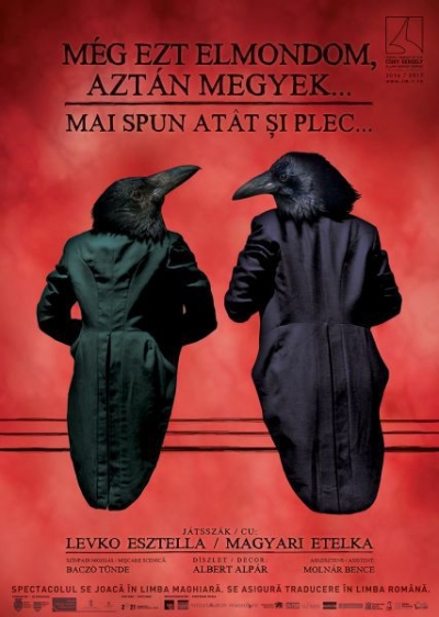 Duminica, 9 octombrie, Teatrul Maghiar de Stat "Csiky Gergely" Timisoara prezinta cea dintai premiera a stagiunii, spectacolul intitulat “Mai spun atat si plec”, regizat si jucat de Magyari Etelka si Levko Esztella.