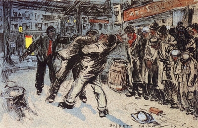 Since 1893 he worked as an illustrator for Philadephia Press and enrolled at the Pennsylvania Academy of Fine Arts, where he met several young artists such as Robert Henri, John Sloan, William J. Glackens. Influenced by the urban realism of their creations, Shinn began working in the same style, trying to reproduce on the canvas the bleak aspects of city life.