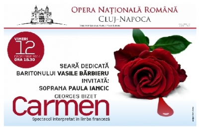 Astazi, 12 decembrie 2014, de la ora 18.30, la Opera Nationala Romana din Cluj-Napoca va avea loc o reprezentatie de exceptie a uneia dintre cele mai cunoscute opere: ”Carmen”, de Georges Bizet. Invitatii speciali ai acestei seri sunt soprana Paula Iancic si baritonul Vasile Barbieru.