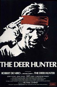 The Deer Hunter (1978) : filmul care practic a lansat "ruleta ruseasca" in lumea cinematografiei si dovada ca America inca nu depasise infernul din Vietnam, "Vanatorul de cerbi" i-a avut in rolurile principale pe Robert De Niro, Christopher Walken si Meryl Streep. Regizat de Michael Cimino, castigator a cinci premii Oscar, a readus in atentia publicul nu doar experienta unui razboi pierdut si a realitatii cumplite din spatele propagandei oficiale americane, ci si criza declansata la intoarcerea "eroilor", incapabili sa se adapteze din nou unei vieti normale.