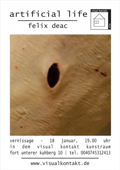 Vernisajul expozitiei lui Felix Deac, “artificial life”, va avea loc miercuri, 18 ianuarie ora 18.00, la visual kontakt ulm ( fort unterer kuhberg 10 ulm-germania).