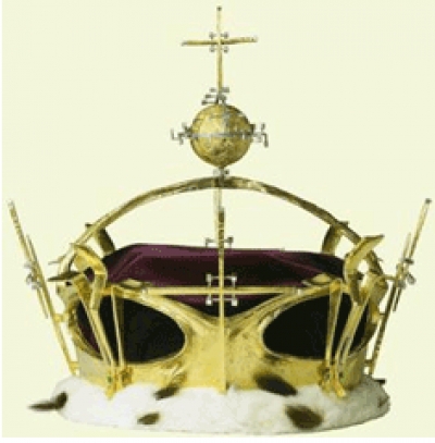 Welsh (cel mai scump aur din lume), armate cu platina si decorate cu diamante si smaralde. Sfera montata in partea de sus a arcului a fost gravata de Malcolm Appleby cu insemnele Printului de Wales. Aceasta este inconjurata de 13 diamante, aranjate astfel incat sa redea pozitia constelatiei Scorpion – zodia printului.