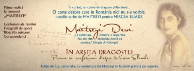 Editura Taj a anuntat pe Facebook ca va lansa poeziile scrise de Maitrey pentru Mircea Eliade. O editie de lux, cu fotografii si interviuri luate surorii, fiului si nurorii lui Maitreyi (acum personaje de roman), scrisori in care autoarea vorbeste despre dragostea ei de-o viata...