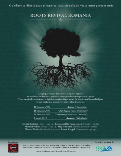 Anul acesta Roots Revival Romania capata o noua dimensiune, cea a unui turneu in patru orase. Turneul se va desfasura in perioada 25 februarie - 1 martie la Brasov, Cluj-Napoca, Timisoara si Bucuresti, si va fi sustinut de sapte muzicieni din sapte tari ale lumii, muzicieni ce doresc sa imbine traditiile si experientele lor artistice personale cu muzicile romanesti de provenienta folclorica.